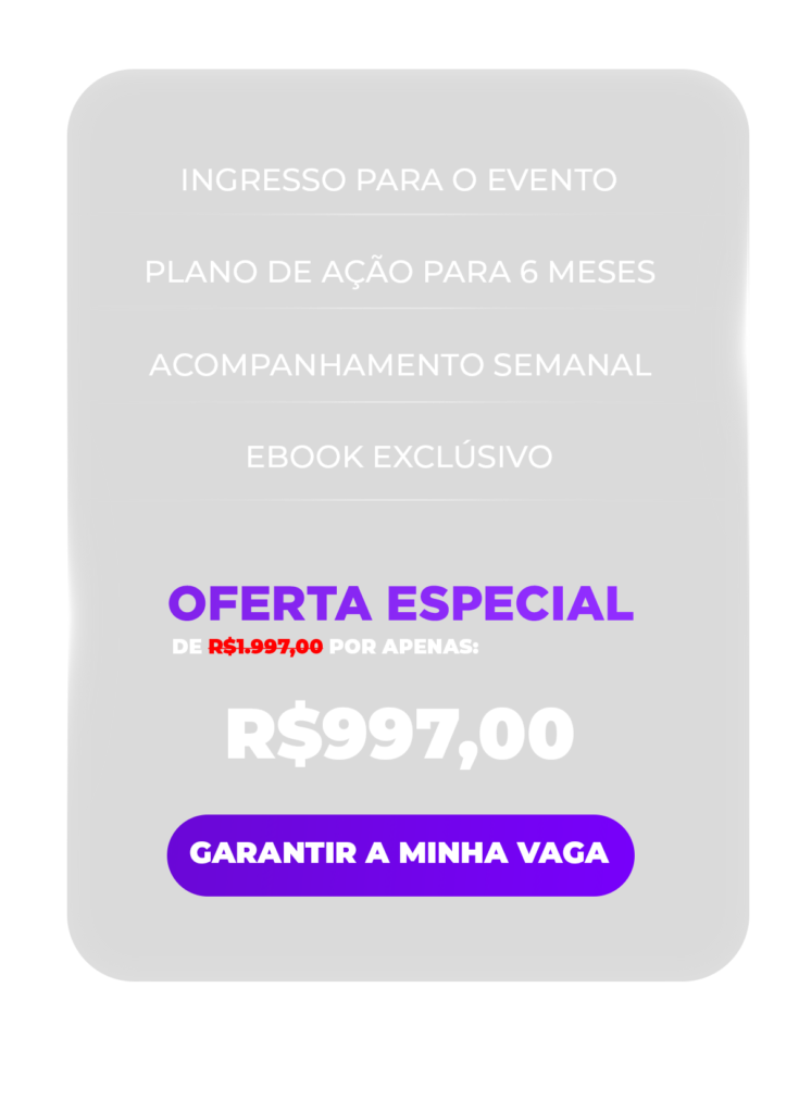 INGRESSOS PRIMEIRO LOTE: R$997,00 70%